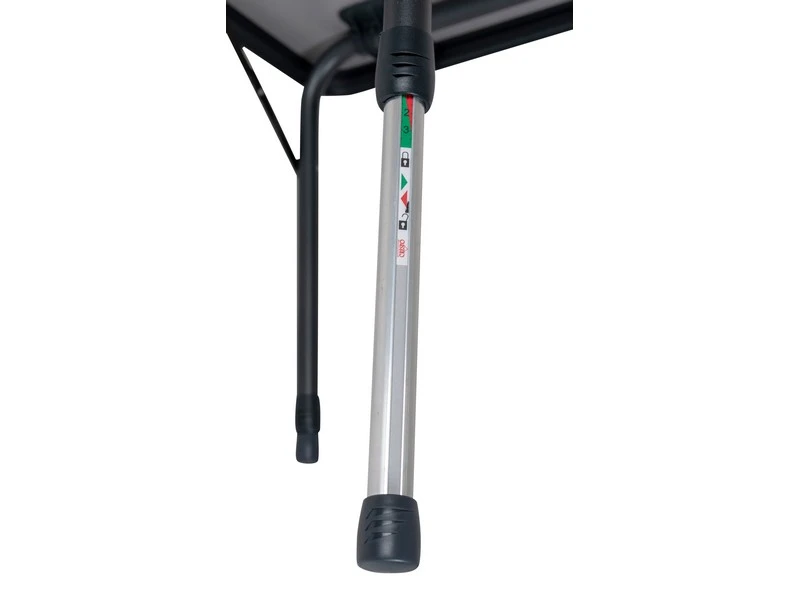 Een lichtgewicht en zeer stabiele tafel. Deze campingtafel is voorzien van een hittebestendig en watervast tafelblad en een aluminium frame met stijlvolle grijze poten. De tafel beschikt over traploos verstelbare poten (48-70 cm) die zijn in te klappen, hierdoor is deze tafel eenvoudig en compact te vervoeren.