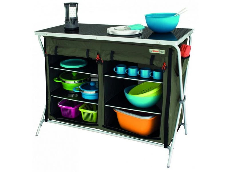 Populaire dubbele campingkast, snel op te zetten en met veel opbergplek.