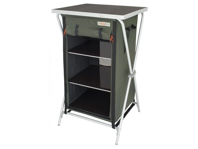 Populaire campingkast, snel op te zetten en met veel opberg plek.