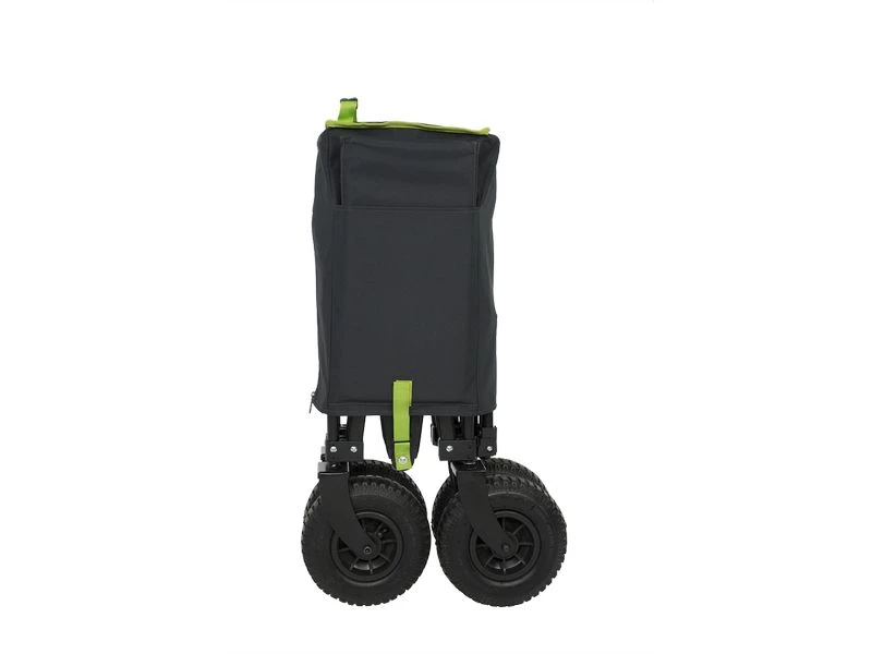 De Travellife bolderkar is uw helpende hand bij het vervoeren van spullen naar uw kampeerplek. Ook voor een dagje naar het strand of voor een festivalcamping komt hij perfect van pas! Bolderkar luchtband kan tot wel 75 kg dragen, zodat u al uw campingstoelen, koelboxen en andere benodigdheden eenvoudig mee kunt nemen. Dat scheelt heel wat tripjes heen en weer! Deze bolderkar heeft speciale wielen die hem extra geschikt maken om op zachte ondergronden te rijden. De luchtbanden hebben maximale grip op bijvoorbeeld het strand en zandweggetjes. De kuip is gemaakt van weerbestendig textiel en voorzien van een waterafstotende coating. U kunt hem dan ook in alle weersomstandigheden gebruiken.